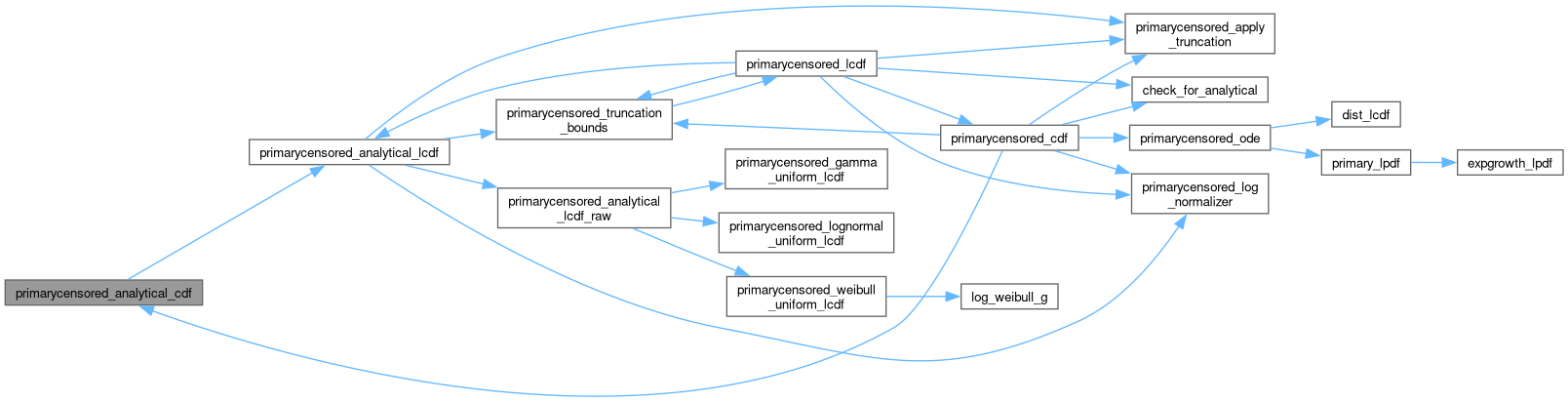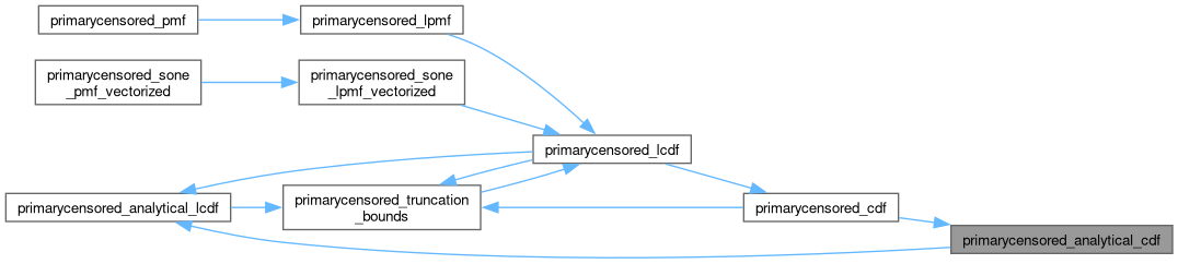 | real | primarycensored_analytical_cdf (data real d, int dist_id, array[] real params, data real pwindow, data real L, data real D, int primary_id, array[] real primary_params) |